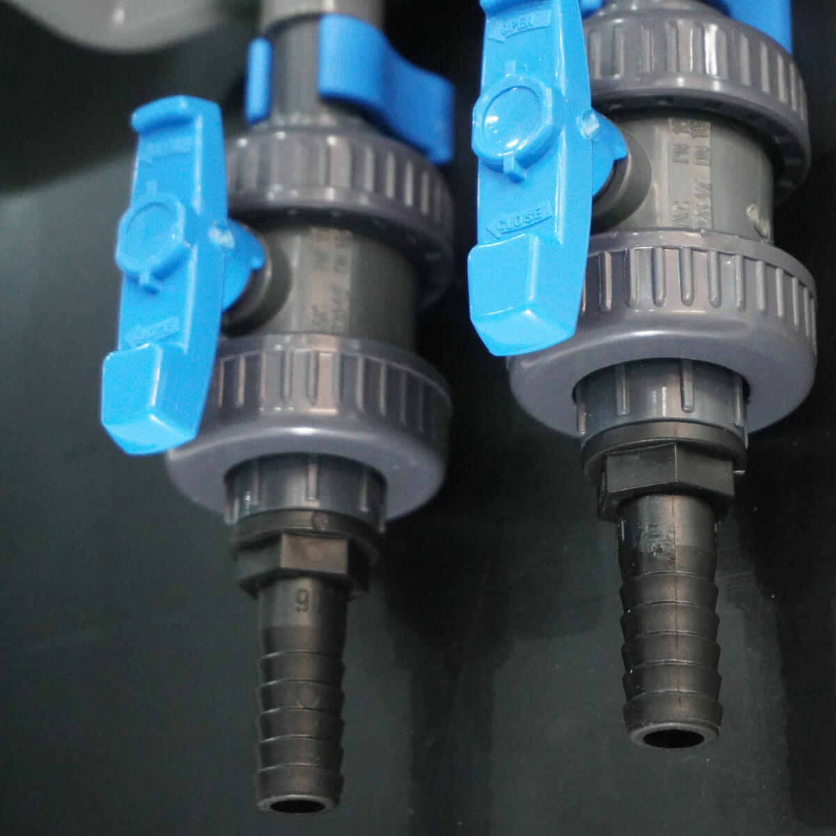 die Kugelhähne optimal geregelt werden. Die Ausgänge am System haben 16mm.