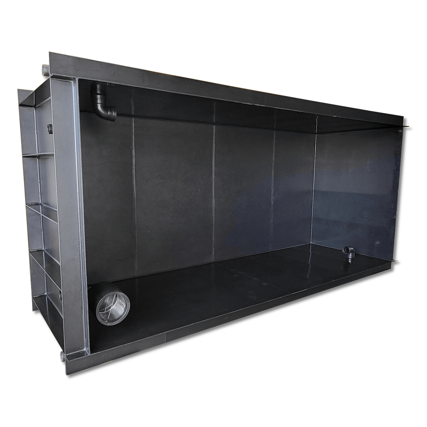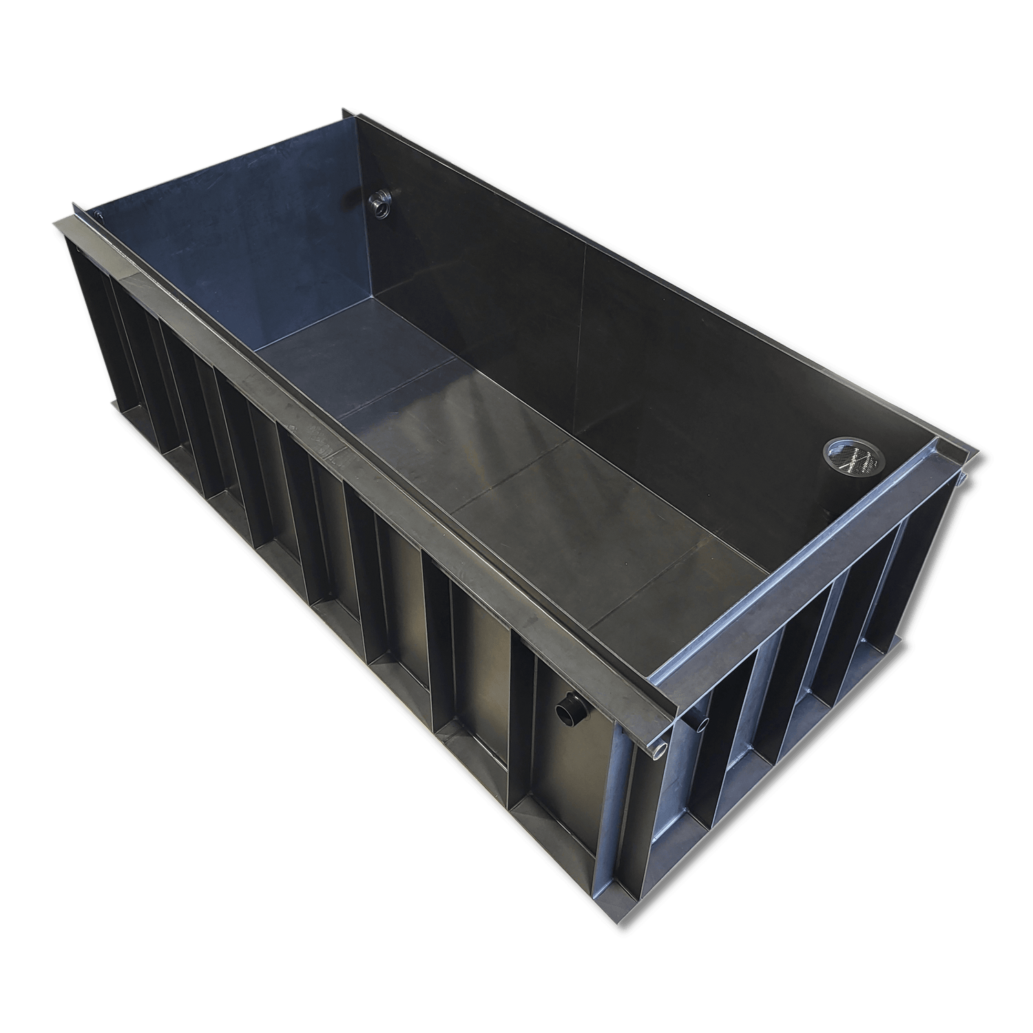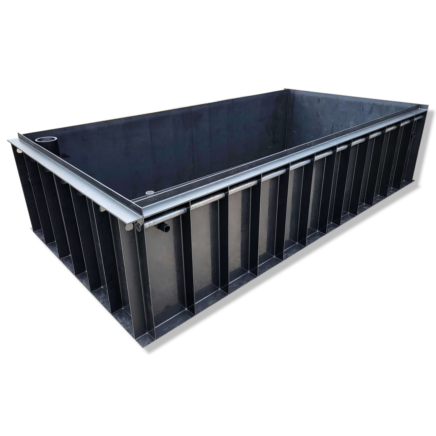 Dank der geschlossenen Bauweise ist der Teich absolut wasserdicht – ohne Folien, Klebestellen oder zusätzliche Abdichtarbeiten. Das macht den Einbau besonders unkompliziert. Auch im späteren Betrieb reduziert sich das Risiko von Undichtigkeiten erheblich.
